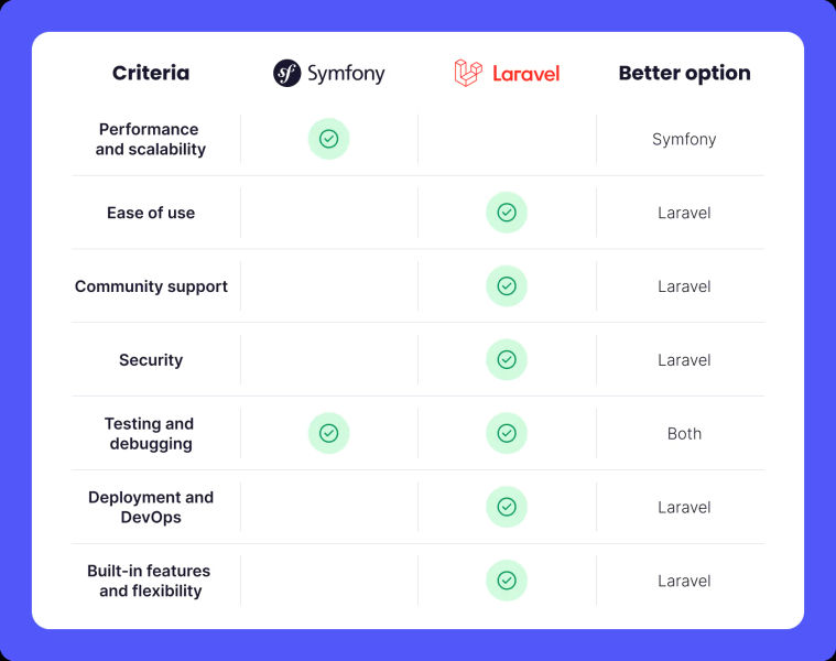 무엇을 사용해야 할지 확신이 없다면, Symfony를 추천함. 대부분의 경우(전부는 아니지만) 올바른 방향으로 이끌어주고, 생태계도 Laravel만큼 강력함.