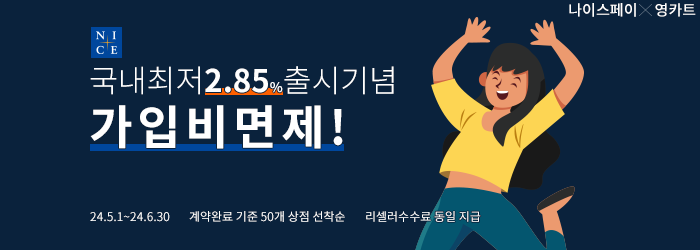240501~ 나이스페이 국내최저 2.85% 출시기념 가입비면제!