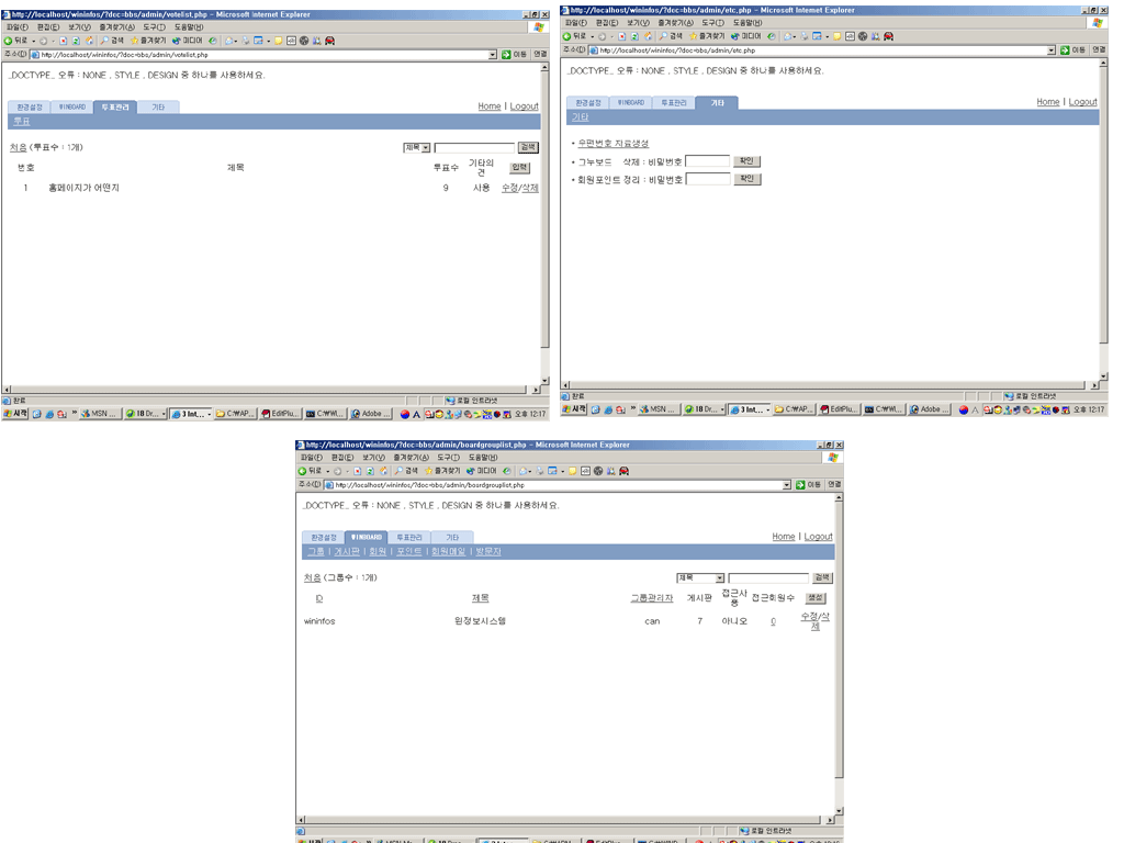 관리자 페이지에서부터 모든 창에 이 메세지가 뜹니다.