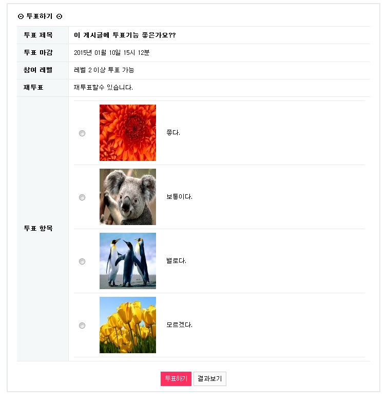 일반 투표항목을 "글자" 뿐 아니라 "이미지"로도 할수 있습니다.