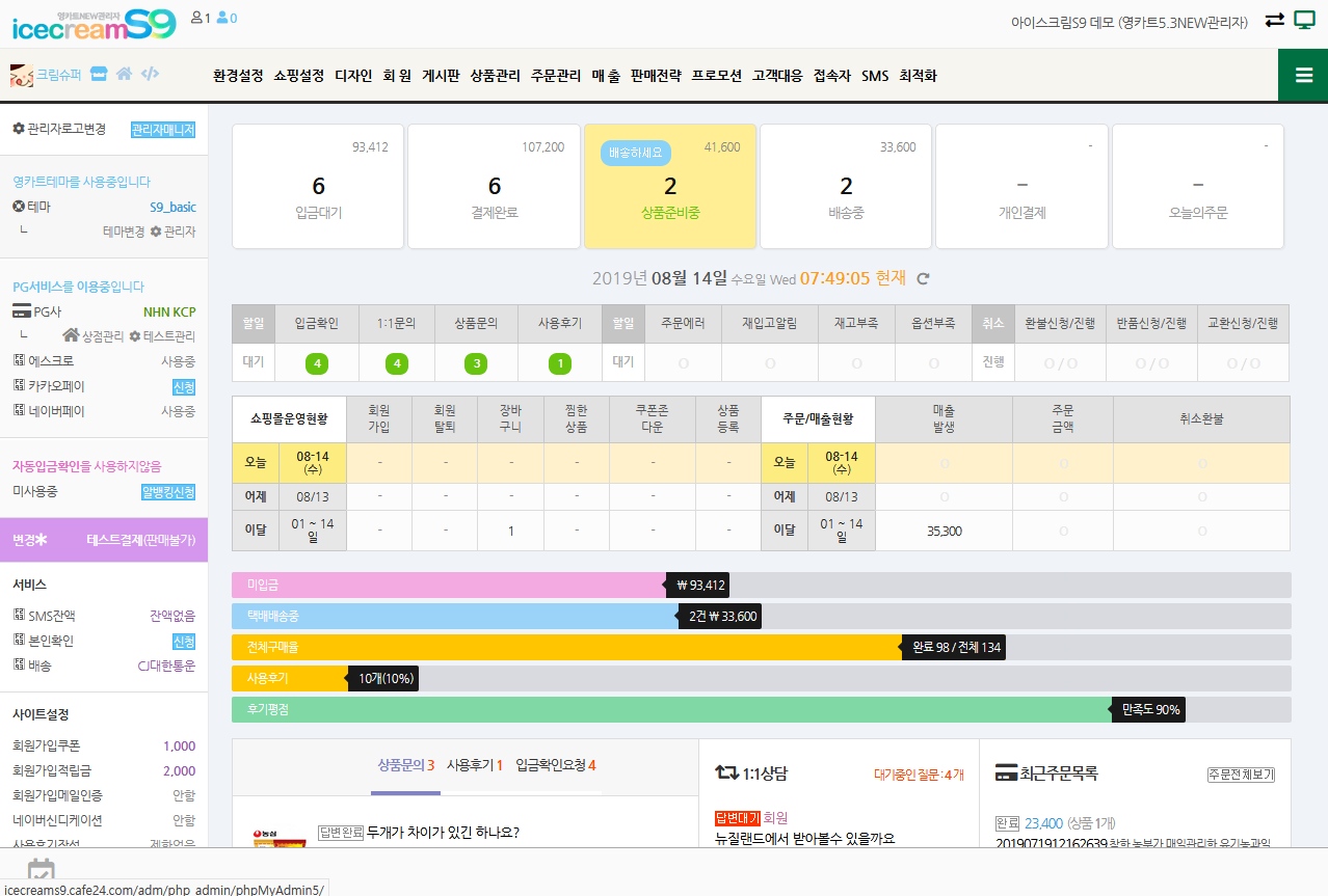 영카트 5.3 버전기반의 NEW관리자모드인 아이스크림S9 은 이미 출시완료되어