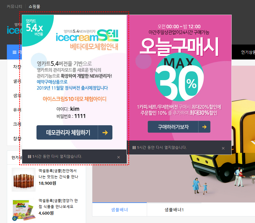 -- 미리보기 사이트와 여기 올라간 팝업창 통합스킨은 기능이 다릅니다
