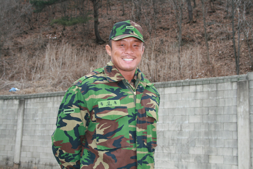 당시 옆중대에 프로씨름단 코치하다가 27세에 군에 들어와 자기 중대장하고 동갑이었던 늙수그레 병장이 있었는데 우리 신병 앞에서는 깨갱(업무상 매일 만나다보니 이런 저런 얘기를 많이 했지요.)