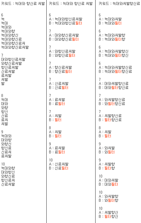 가운데의 A는 분리한 키워드, B는 필터된 키워드