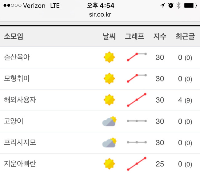 글에 대한 점수가 확연히 차이가 납니다. 출산육아에서 글을 쓰시는 분은 대여섯명(기본이 25-30점)이고