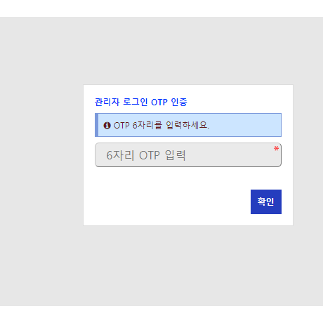 관리자 로그인시 6자리 임시 비밀번호를 추가로 입력해야 관리자 로그인이 됩니다.