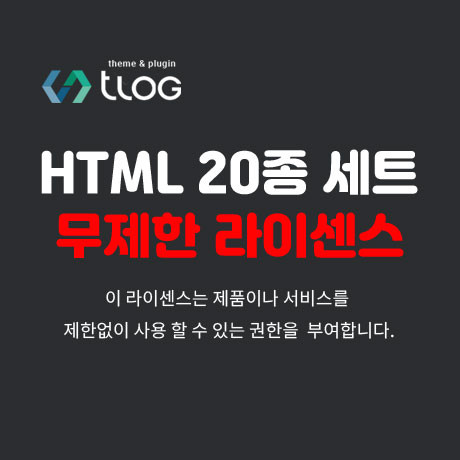 [티로그 테마] 풀반응형 HMTL 디자인 20종 컨텐츠 관계없이 완전 무제한 라이센스 요약정보 및 구매
