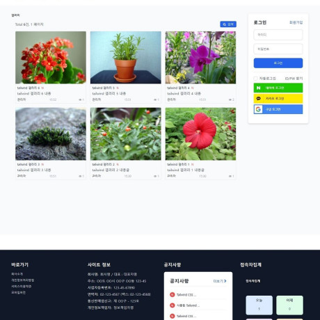 head.php: 헤더 및 네비게이션tail.php: 푸터 및 사이드바index.php: 메인 콘텐츠 레이아웃skin/latest/basic/: 최신글 스킨skin/outlogin/basic/: 로그인 스킨skin/poll/basic/: 설문조사 스킨css/default.css 확인head.sub.php에서 Tailwind CSS가 제대로 로딩되는지 확인이 테마는 1Domain 1Copy의 라이선스를 따릅니다.