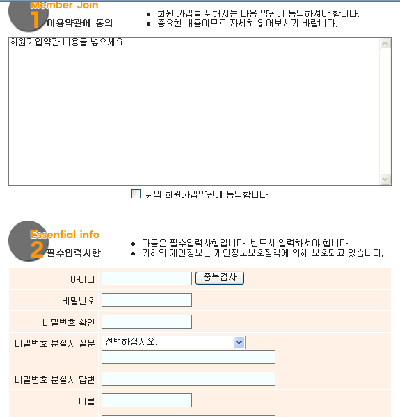 두번째 필수입력사항옆에 개인정보보호정책 <-- 여기 걸린 링크를 꼭 지워주세요.. ^^;;