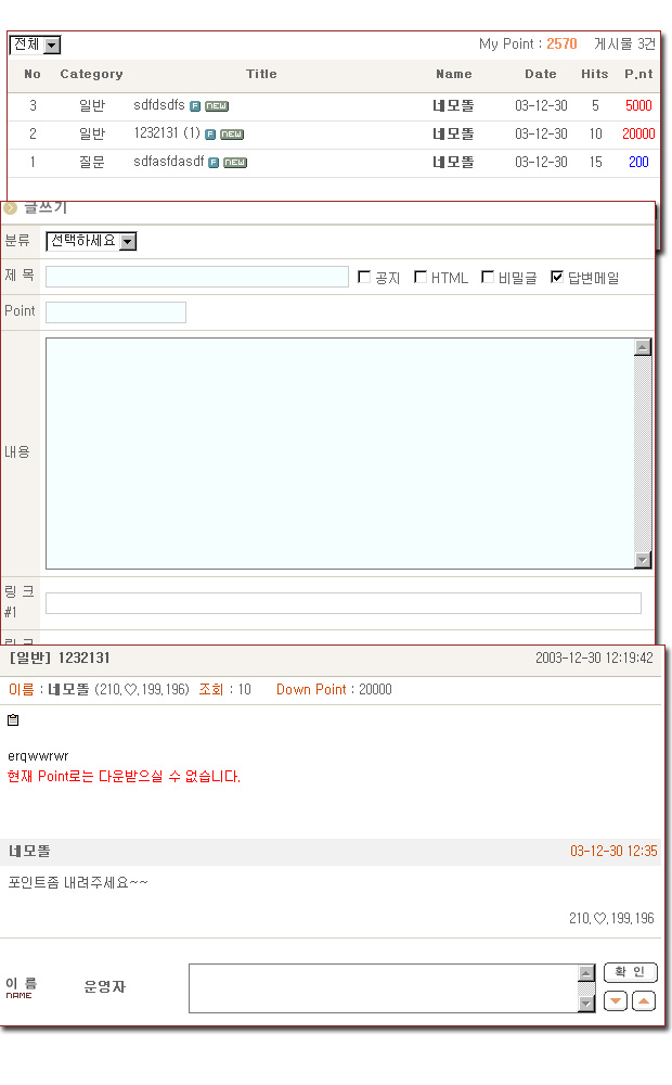 게시판 글쓴이가 갈취포인트를 정하는 기본 스킨관련링크