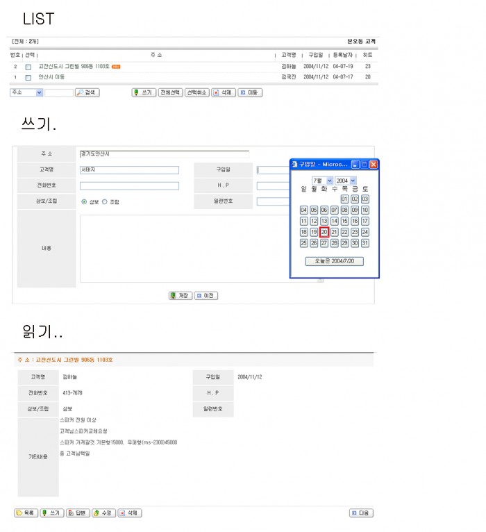 게시판 고객 목록 스킨...