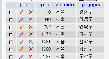 우편번호테이블을 사용한 스킨용 sql > 그누4 스킨
