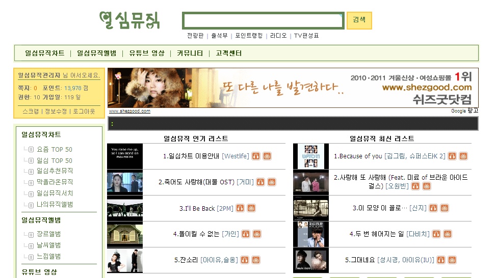 일심뮤직이라는 유튜브 뮤직싸이트~ 정보