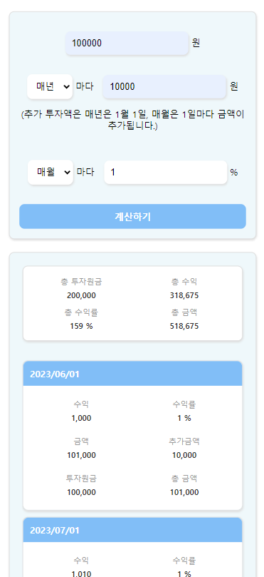 투자(복리)계산기 정보