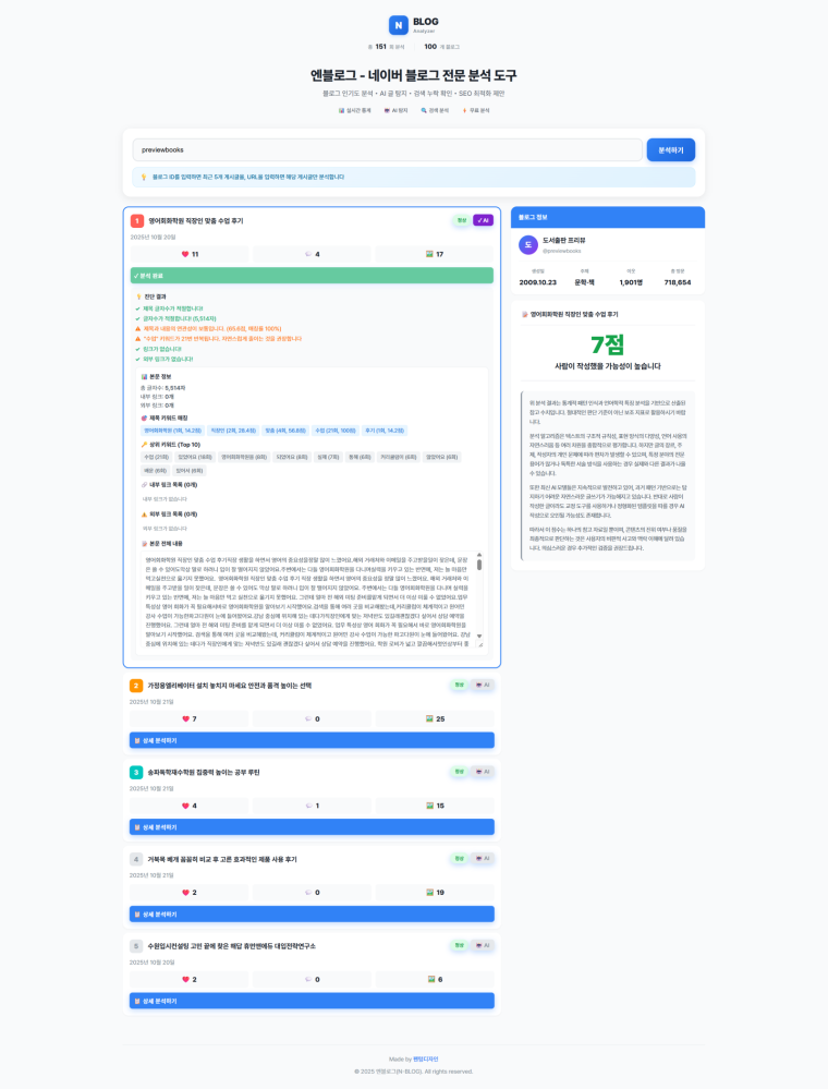 엔블로그(N-BLOG) - 무료 네이버 블로그 분석 도구