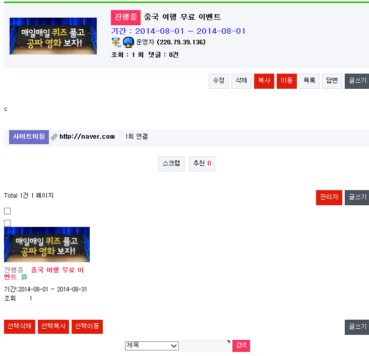 게시판 이벤트 게시판 카테고리 자동 업데이트관련링크