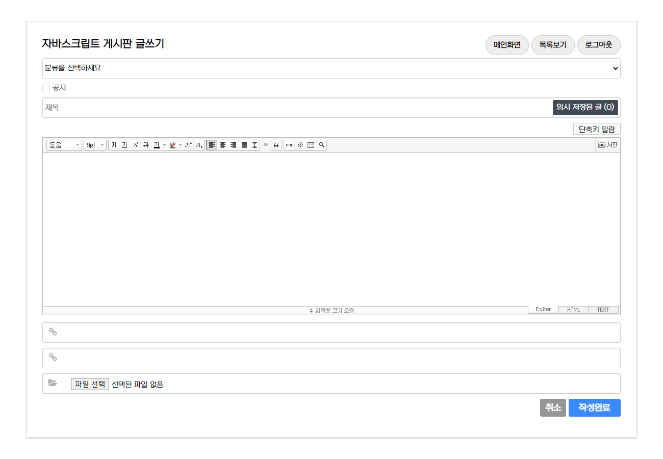 게시판 pc용 깔끔 큼직한 글쓰기 스킨