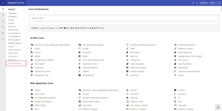 첨부된 파일 icons_fontawesome.php을 관리자 디렉토리에 업로드