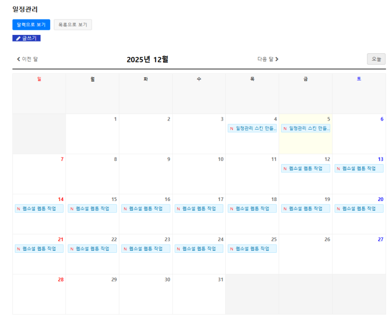 그누보드5 최신버전에 사용할 수 있는 달력기능이 있는 일정관리입니다.