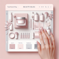a pink-themed beauty blog, UX/UI, feminine, light pink, white, grey