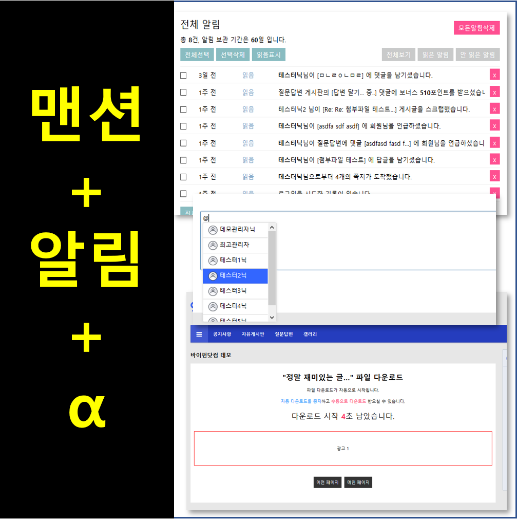 맨션(@사용자) 기능 + 알리미 플러그인 정보