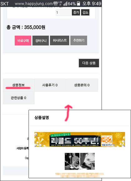 [모바일] 제품상세페이지에서 상품정보(상품설명) 함께보는 방법