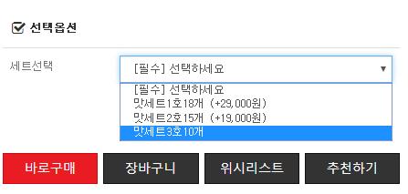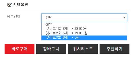 그래서 옥션처럼 추가금액이 없는 옵션가격에는 아무표시 없이 나오고